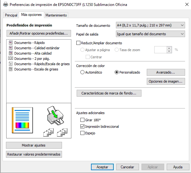 Proceso para Configurar el Perfil de Color ICC como Predeterminado para Sublimación