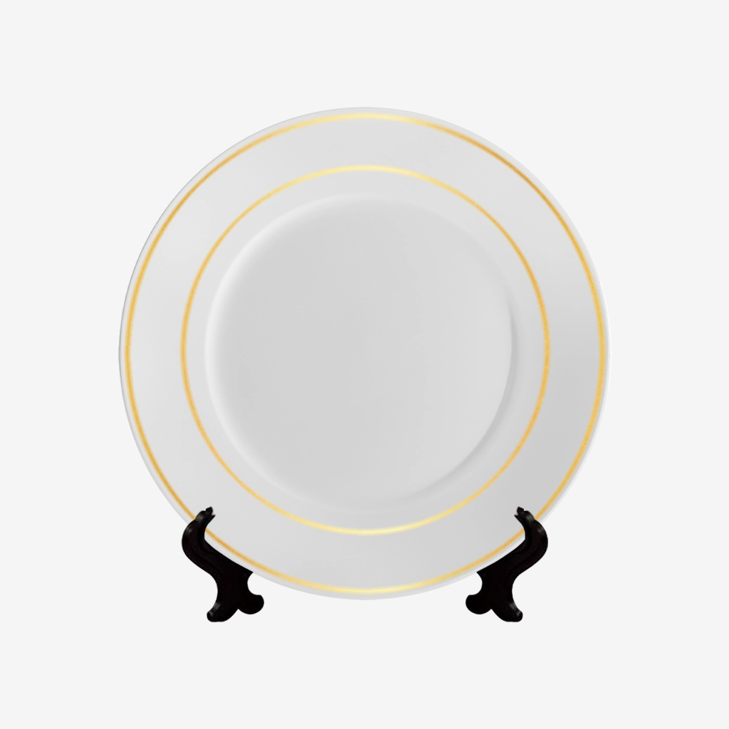 Ya sea para una cena íntima o un evento especial, nuestro Plato Blanco con Borde Dorado de 8 Pulgadas agrega un toque de glamour a tu mesa. Haz que cada comida sea memorable con este elegante y versátil plato.