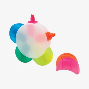 Medida: 11cm ancho x 10cm Descripción: Resaltador forma de muñeco con limpiador de teclado, con 4 puntas en color verde, fucsia, amarillo y azul. Presentación: Individual, en Bolsa plástica transparente.