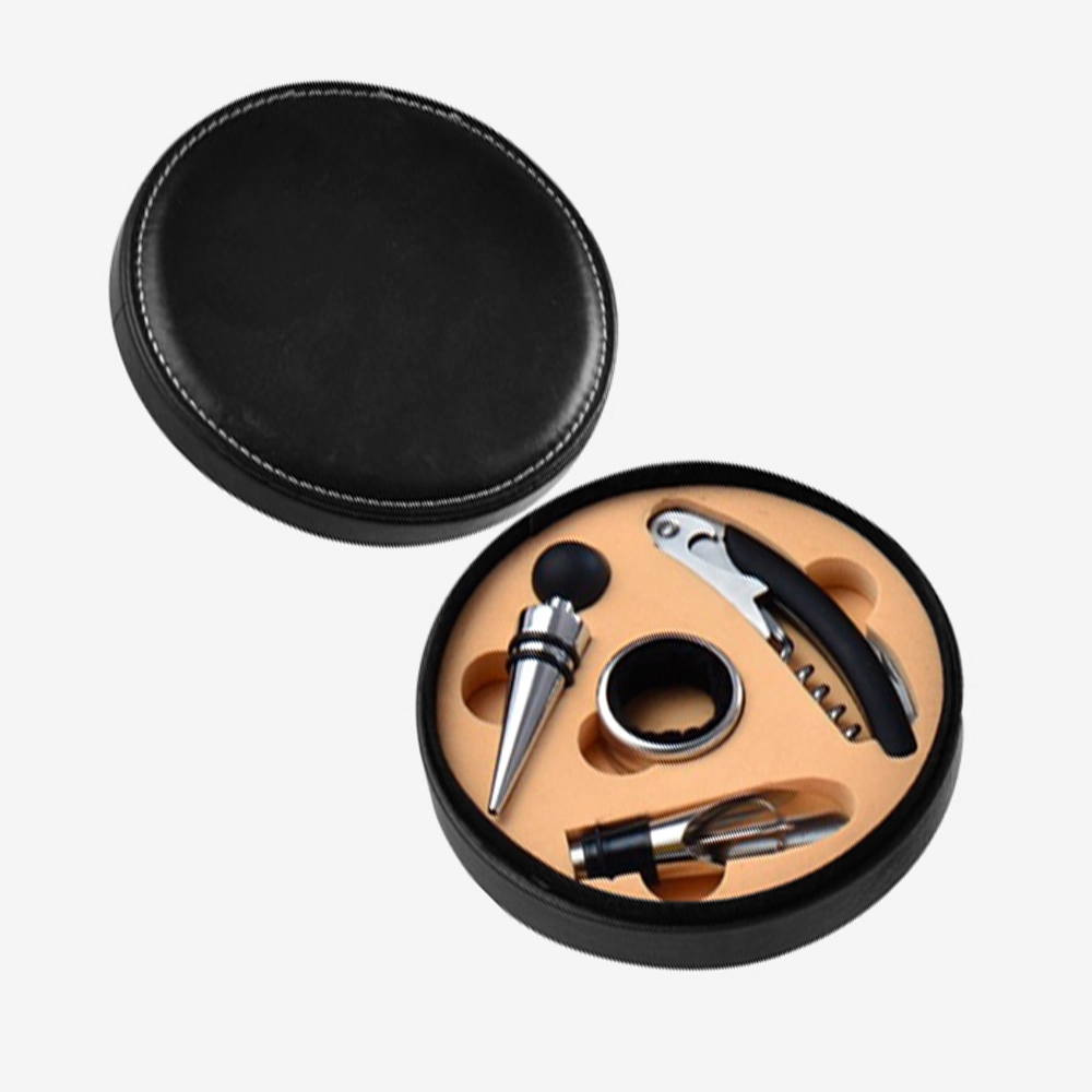 Set de Vino Biocuero 4 Piezas en Estuche Redondo